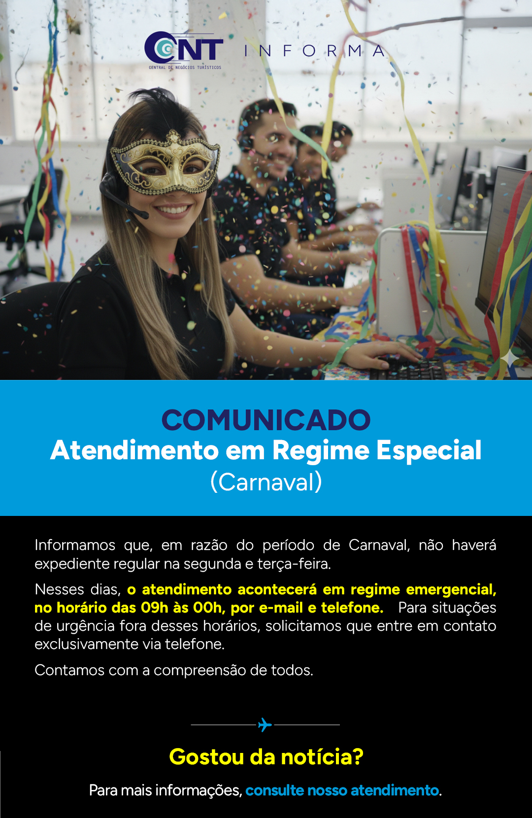 Comunicado Atendimento em Regime Especial(Carnaval)