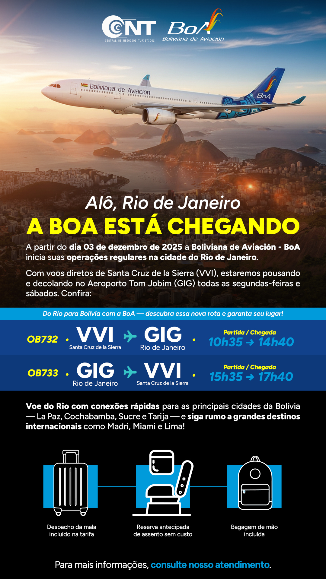 Boliviana de Aviación – BoA – inicia operação regular na cidade do Rio de Janeiro