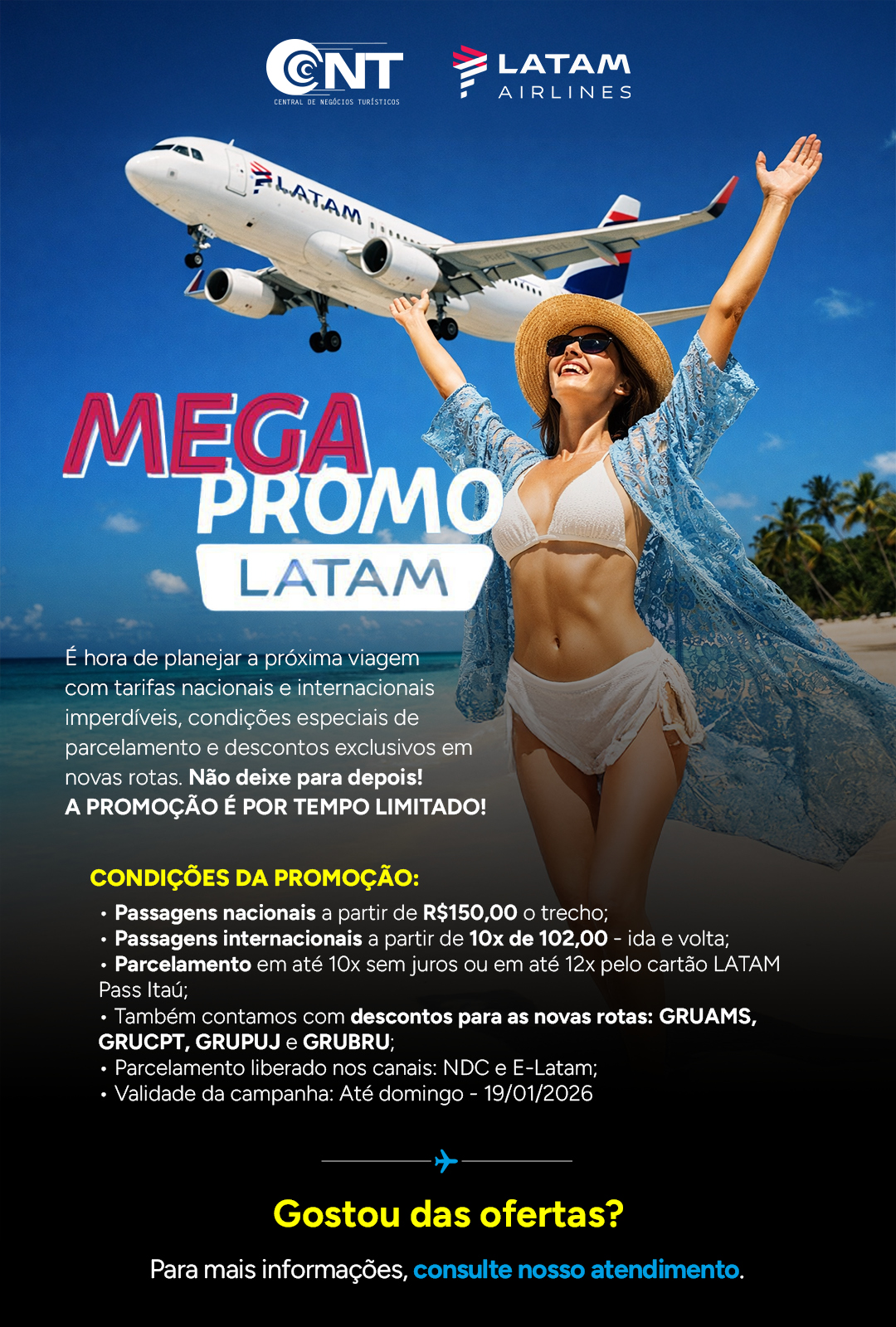 Neste mês, nossa malha aérea possui voos para:59 destinos nos 26 estados brasileiros e 156 destinos em 26 países do mundo. Confira as datas e…