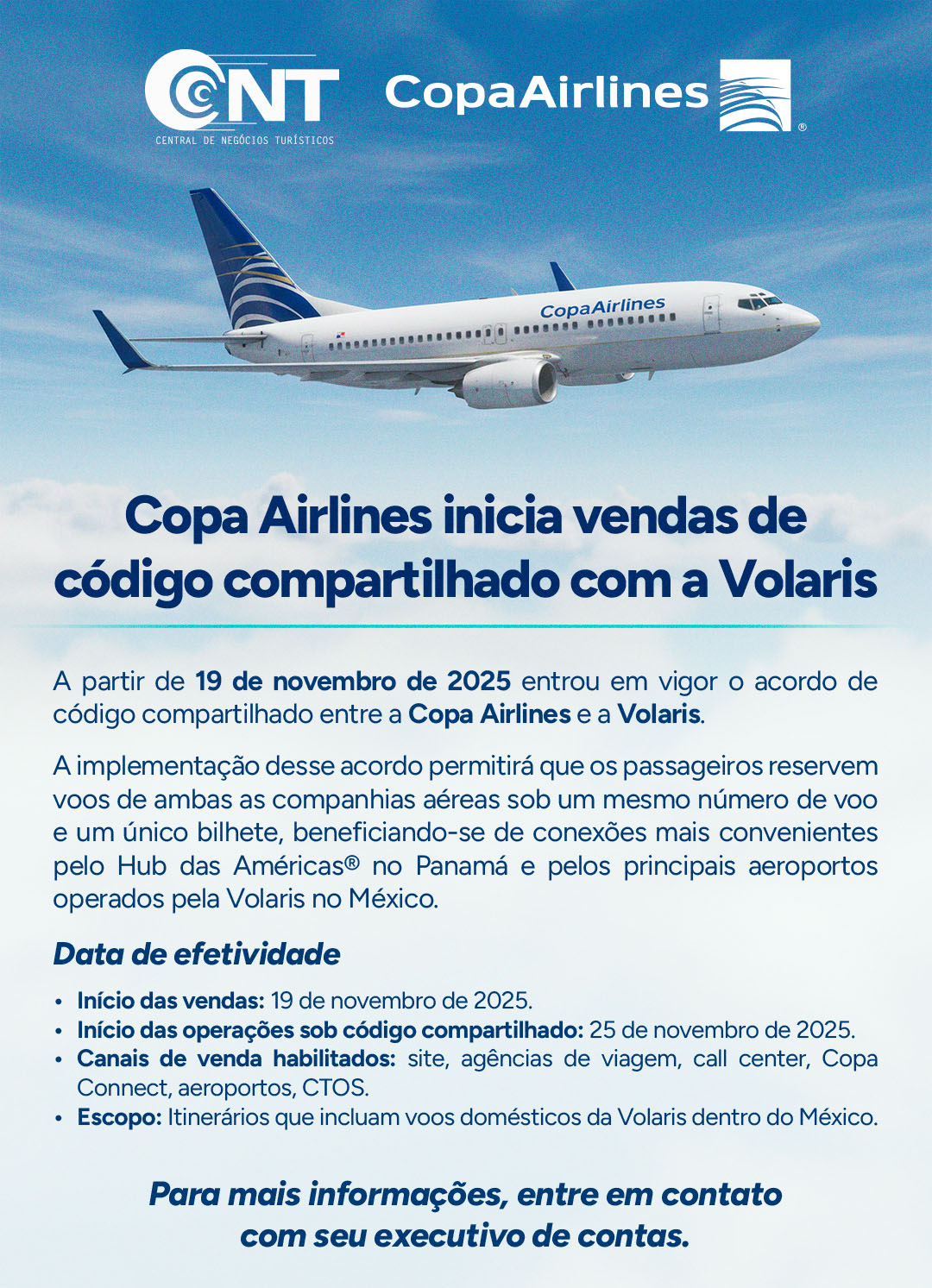 Copa Airlines inicia vendas de código compartilhado com a Volaris