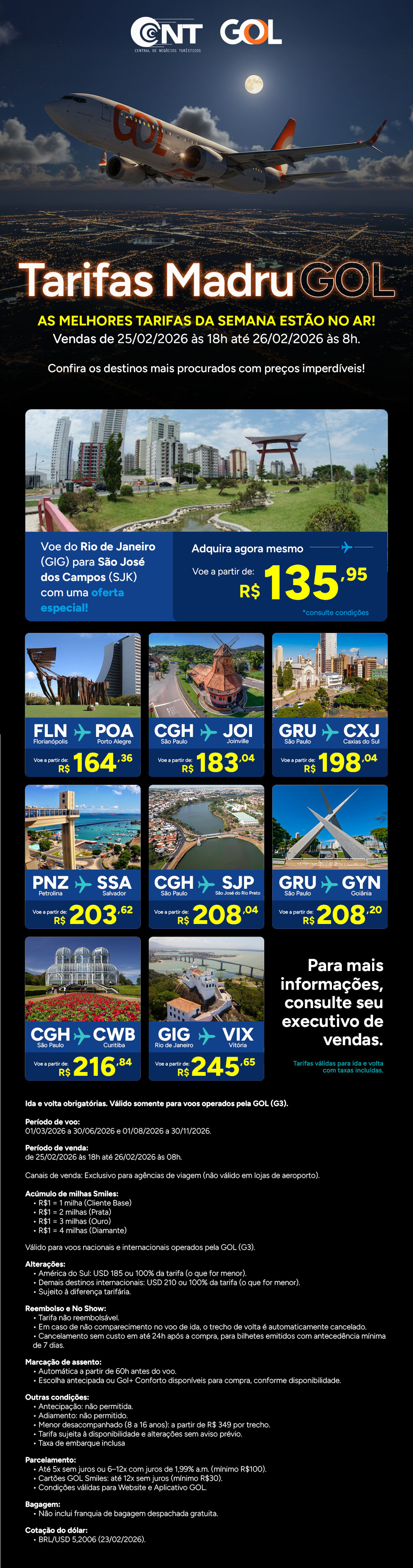 • Aplicável para todas as rotas, inclusive trechos internos da IT.