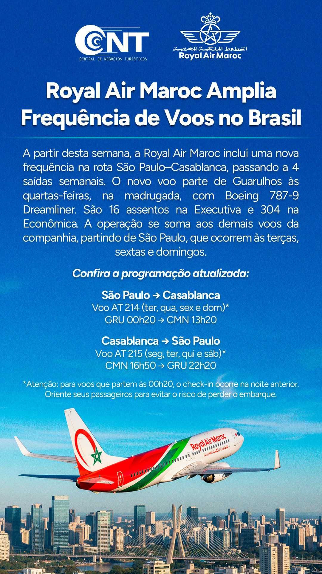 Royal Air Maroc Amplia Frequência de Voos no Brasil