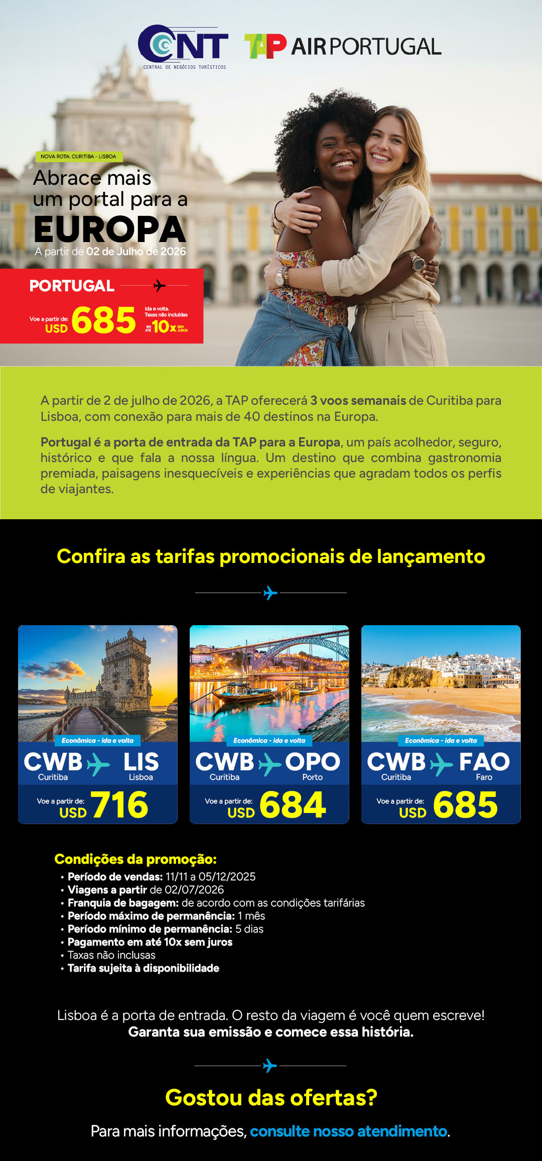 Descubra Portugal com a TAP – tarifas promocionais saindo de Curitiba