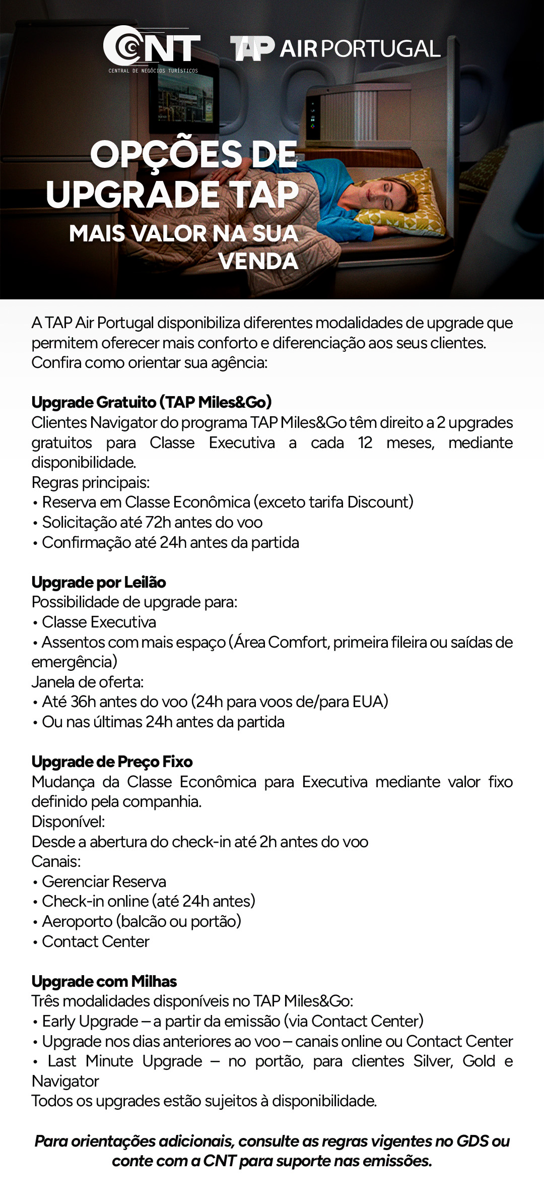 Opções de Upgrade TAP – Mais Valor na sua Venda